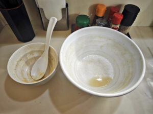 さて、前回は”ノーマル”を頂いたので、今回は”醤油”と「ミニ鶏ネギ丼」の組み合わせです。