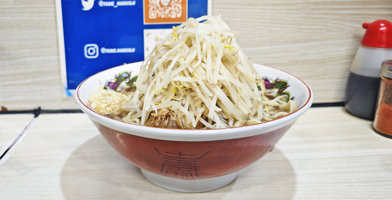 備考:2012年10月、西岡津世志氏が創業し、日本各地で展開。コールは、ヤサイ、アブラ、ニンニク。”ラーメンを食べるだけでなく、食べた後、希望者は「夢を語る」ことが出来る空間が提供されている”。デリバリー、テイクアウトあり。