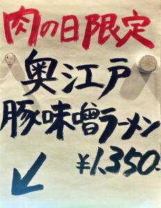 本日の肉の日は、「奥江戸豚味噌ラーメン」です。