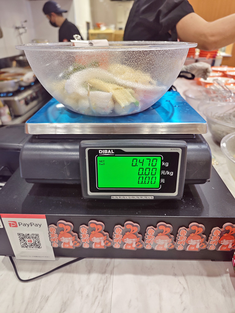 備考:”バイキング形式でありながらも味で勝負する当店 は、新鮮で上質な食材にこだわった本格麻辣湯をお届け!具材は60種類以上あり辛さも五段階と調整できるため、自分だけのオリジナルメニューをお作りいただけます☆中国から取り寄せた20種類以上の本格調味料を使用して作る本格中華をぜ ひご堪能あれ。”計量して1000円以上になると、お好きな麺を80gサービスします。