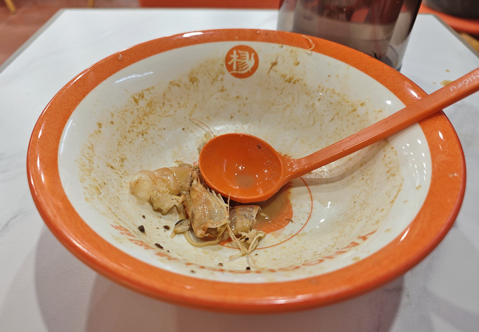 店舗の真ん中あたりに、お箸、レンゲ、取り皿などが用意されているので、出来上がるまでに手元に用意しておくと良いと思います。