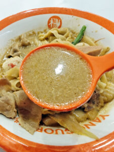 グラム数を計るときに、スープと辛さを訊かれるので、お好みを伝えてください。