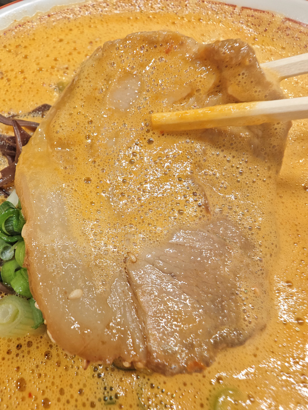 チャーシューにも、泡立ったスープがべっとり♪
