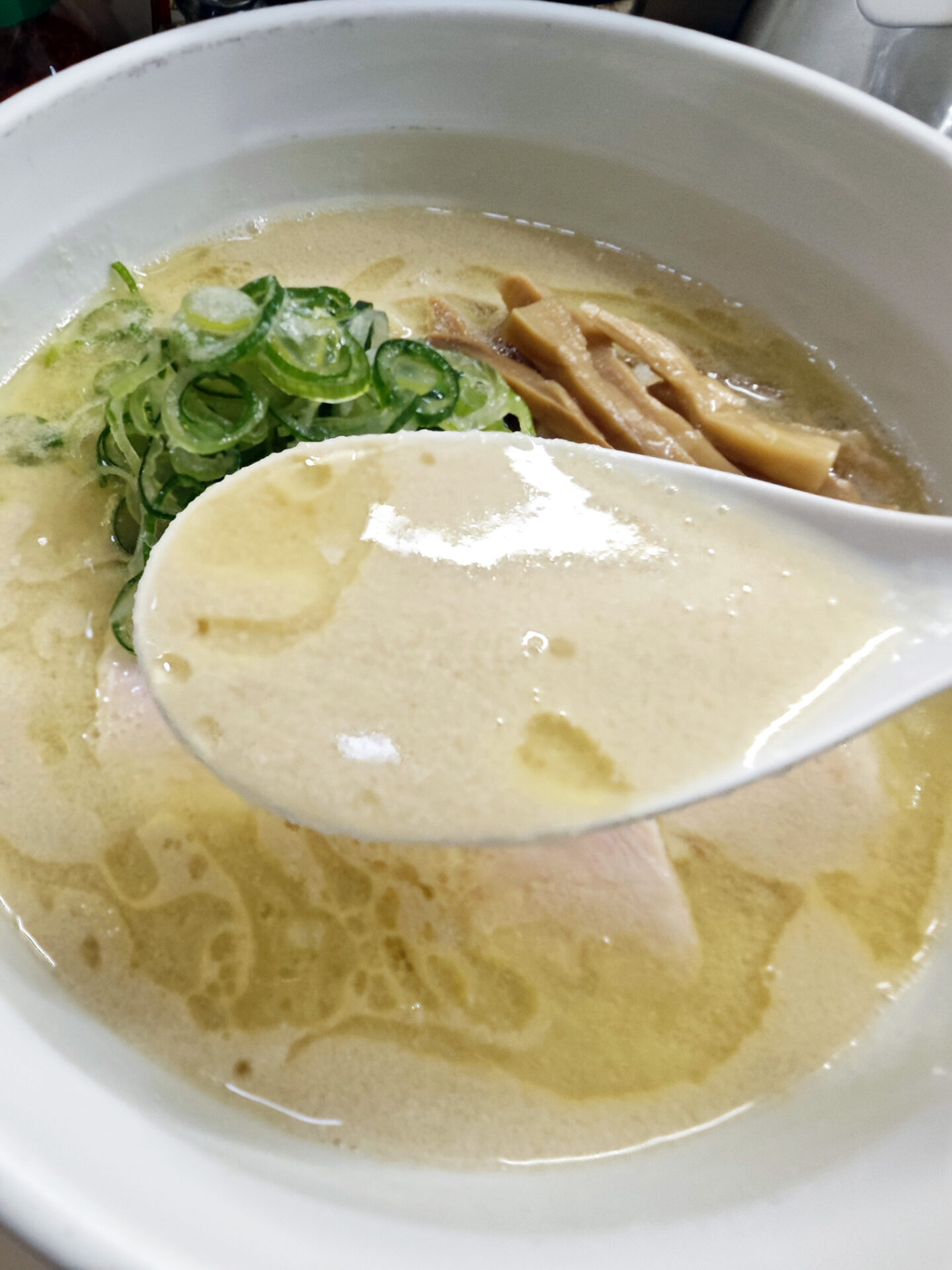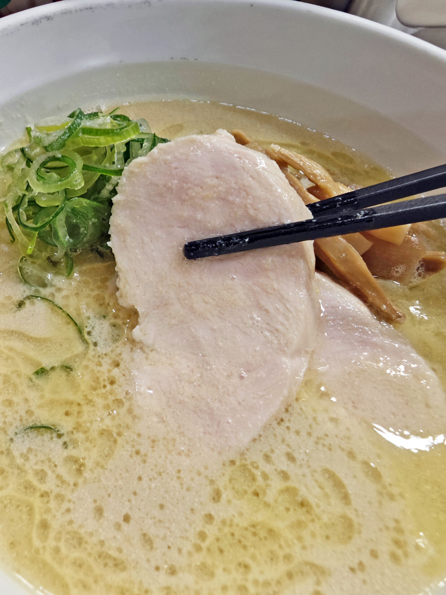 というわけで、初めに戻って「鶏白湯(塩)」を頂きます。