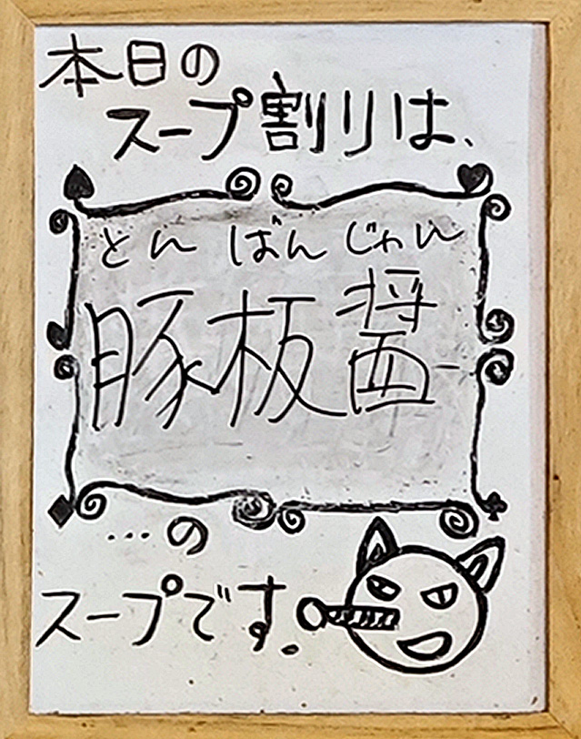 備考:ラーメンでもスープ割りあり。丸孫商店(青梅)の2号店。