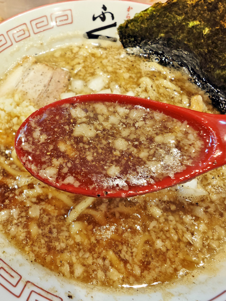 スープには、背脂が浮いています。