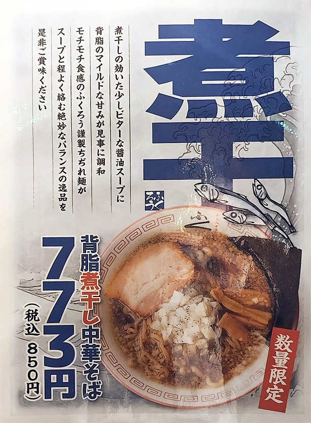 3月の限定は「背脂煮干し中華そば」です。