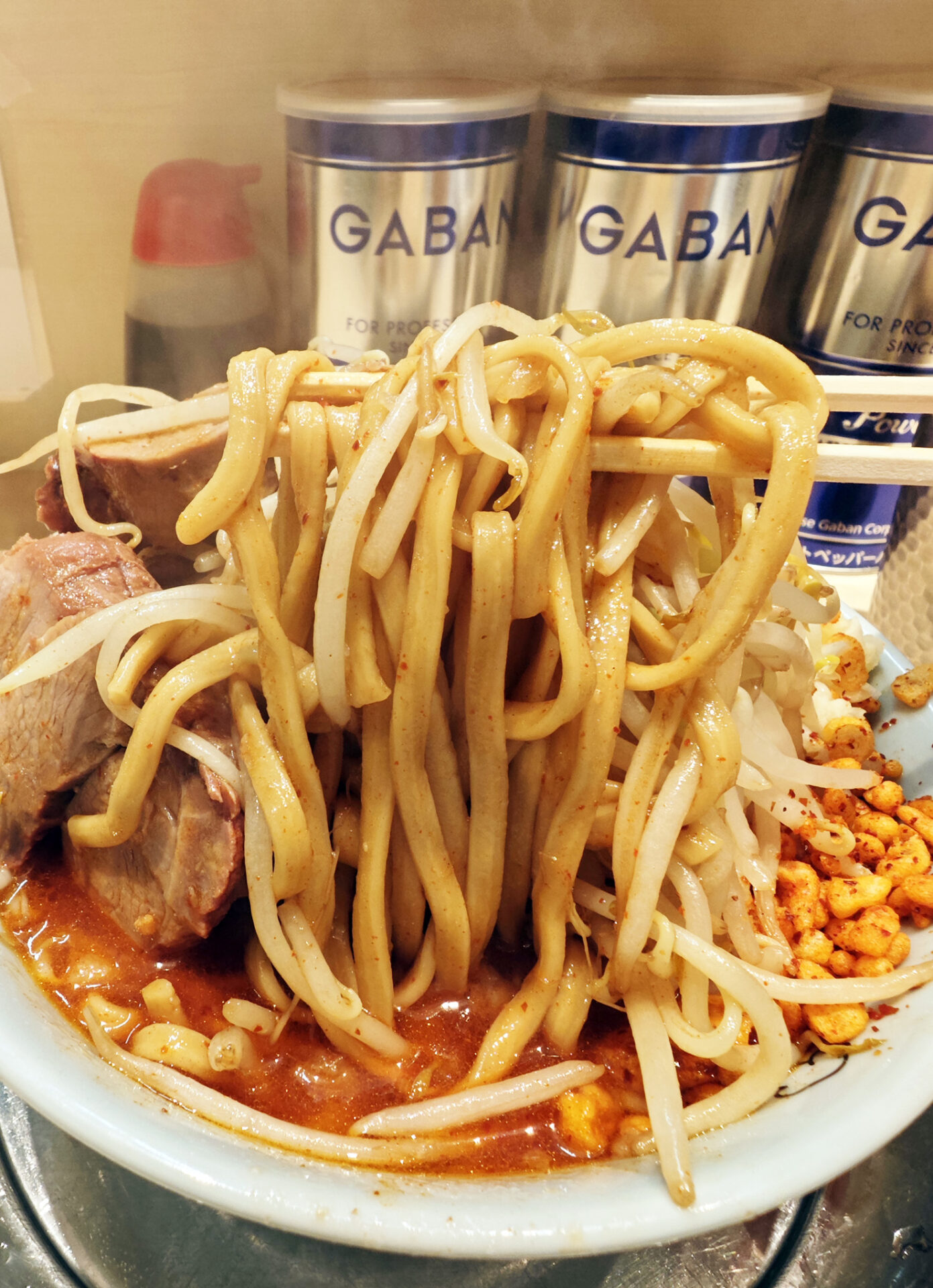 立川といえば、近くには、直系の「二郎立川店」、「立川田田」、「マシマシ」、先日オープンしたばかりの「俺の生きる道」といった具合に、二郎系ラーメン店が乱立しています。