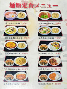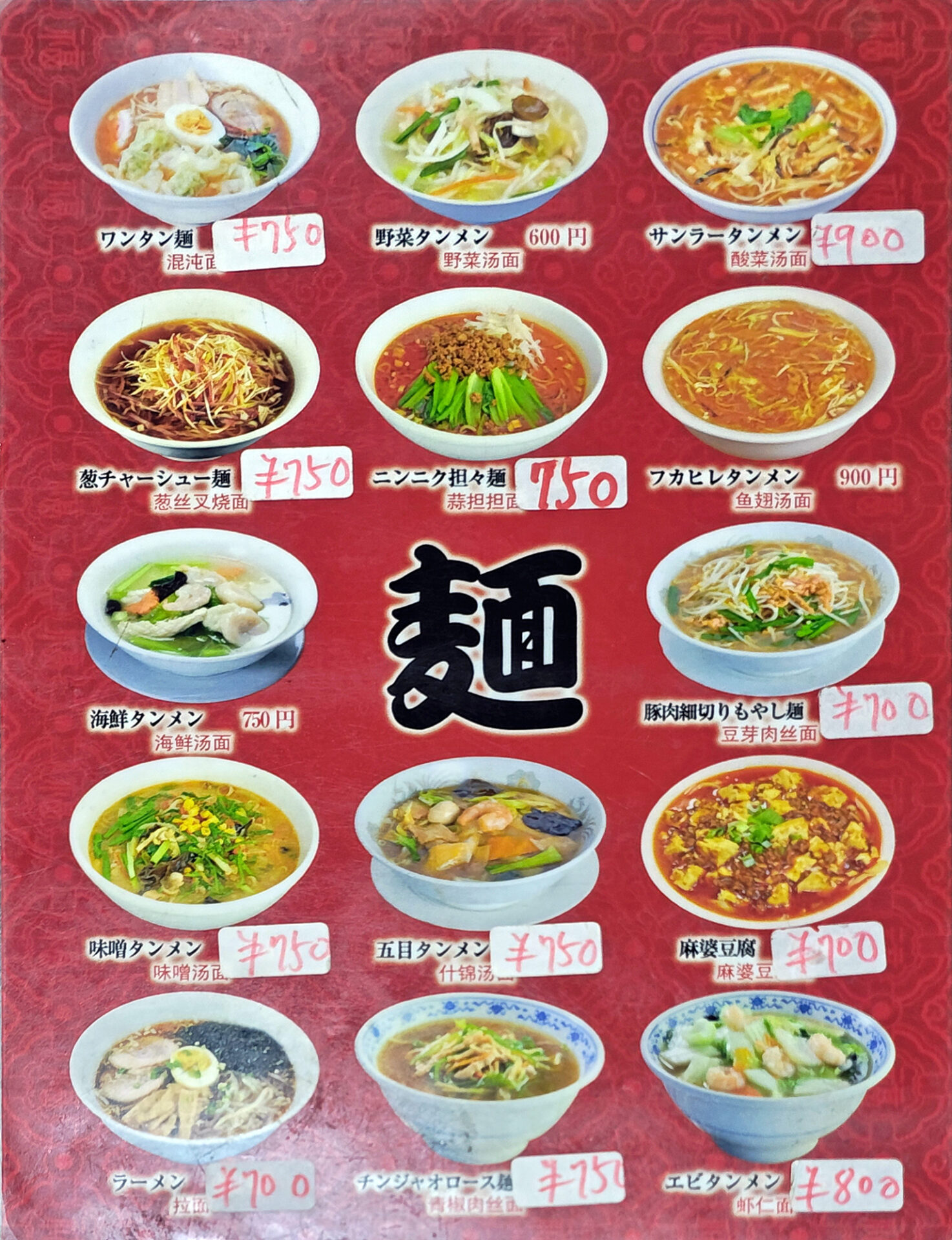 ほかにもたくさんのメニューがありますが、麺類をメインに紹介します。