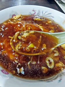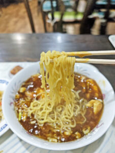 醤油が強めに効いていて、甘じょっぱい餡が、かに玉や麺に、とろっと絡んできます。