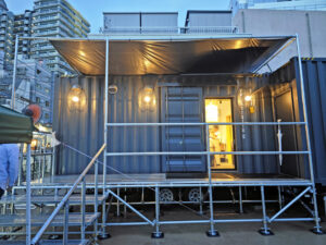 店舗は、普通の店舗ではなく、黒いコンテナを店舗として利用しています。