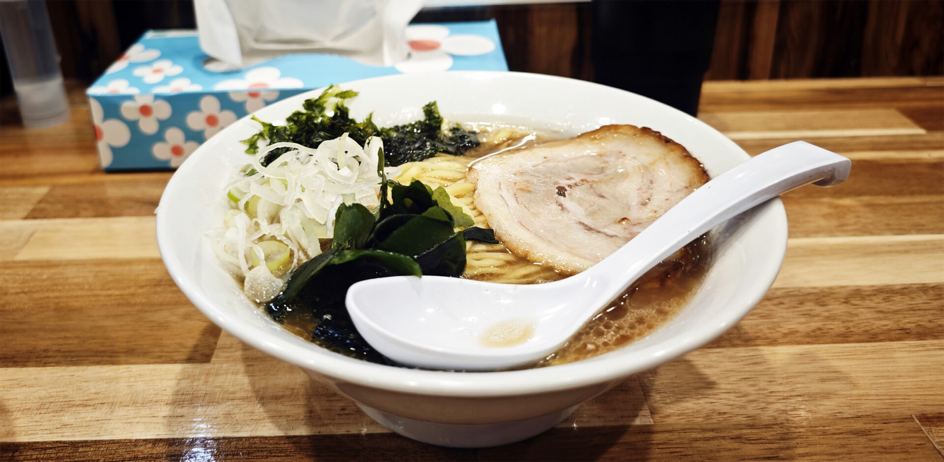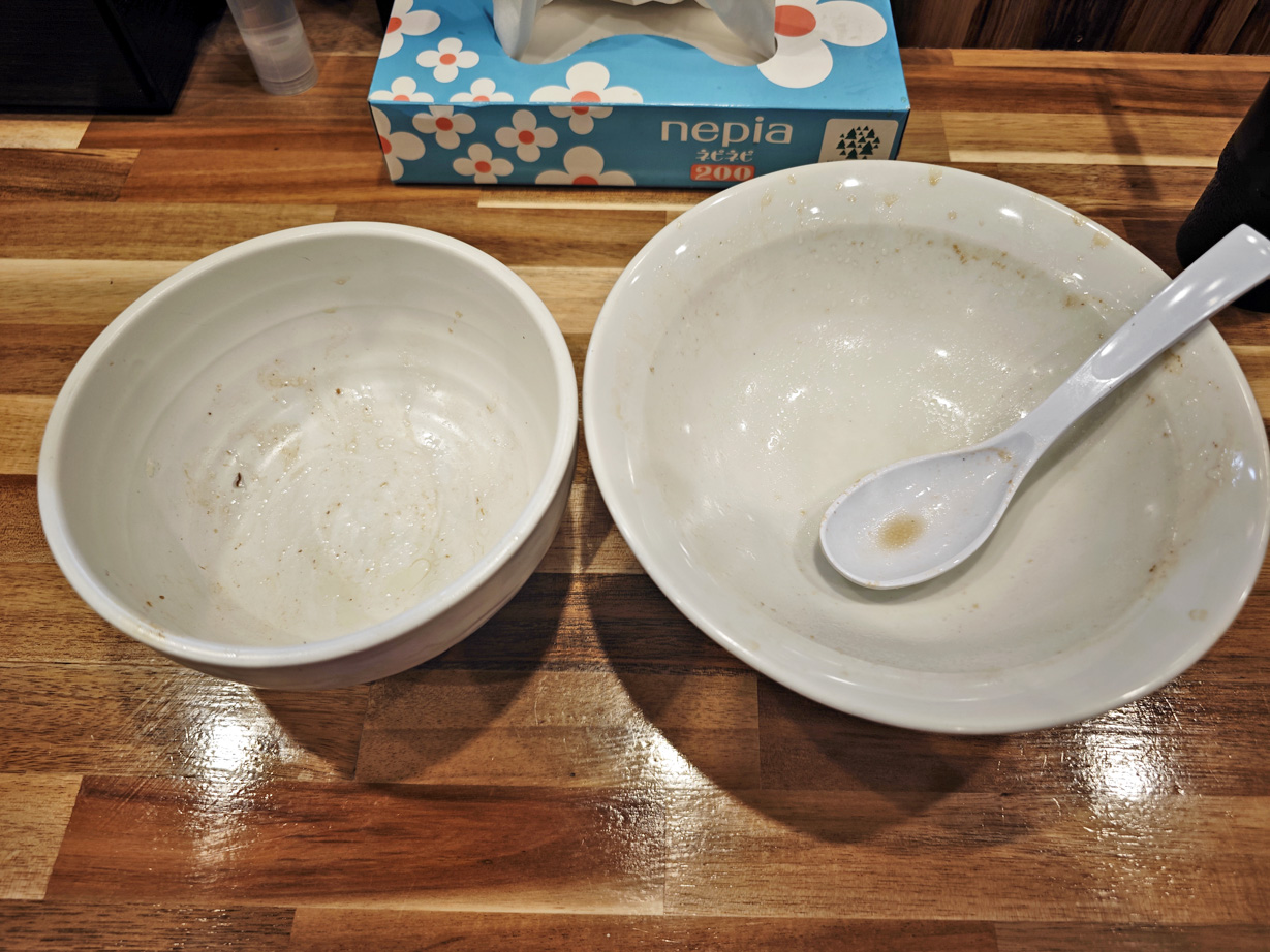 「味噌らーめん」「煮干しらーめん」は、すでに食べていましたので、今回は「醤油豚骨らーめん」を頂いてみます。