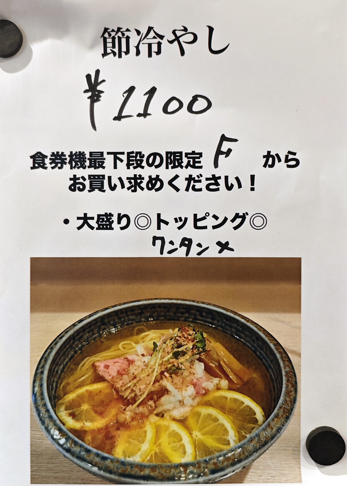 限定「節冷やし」1100円+「焼豚丼」350円@麺笑巧真
