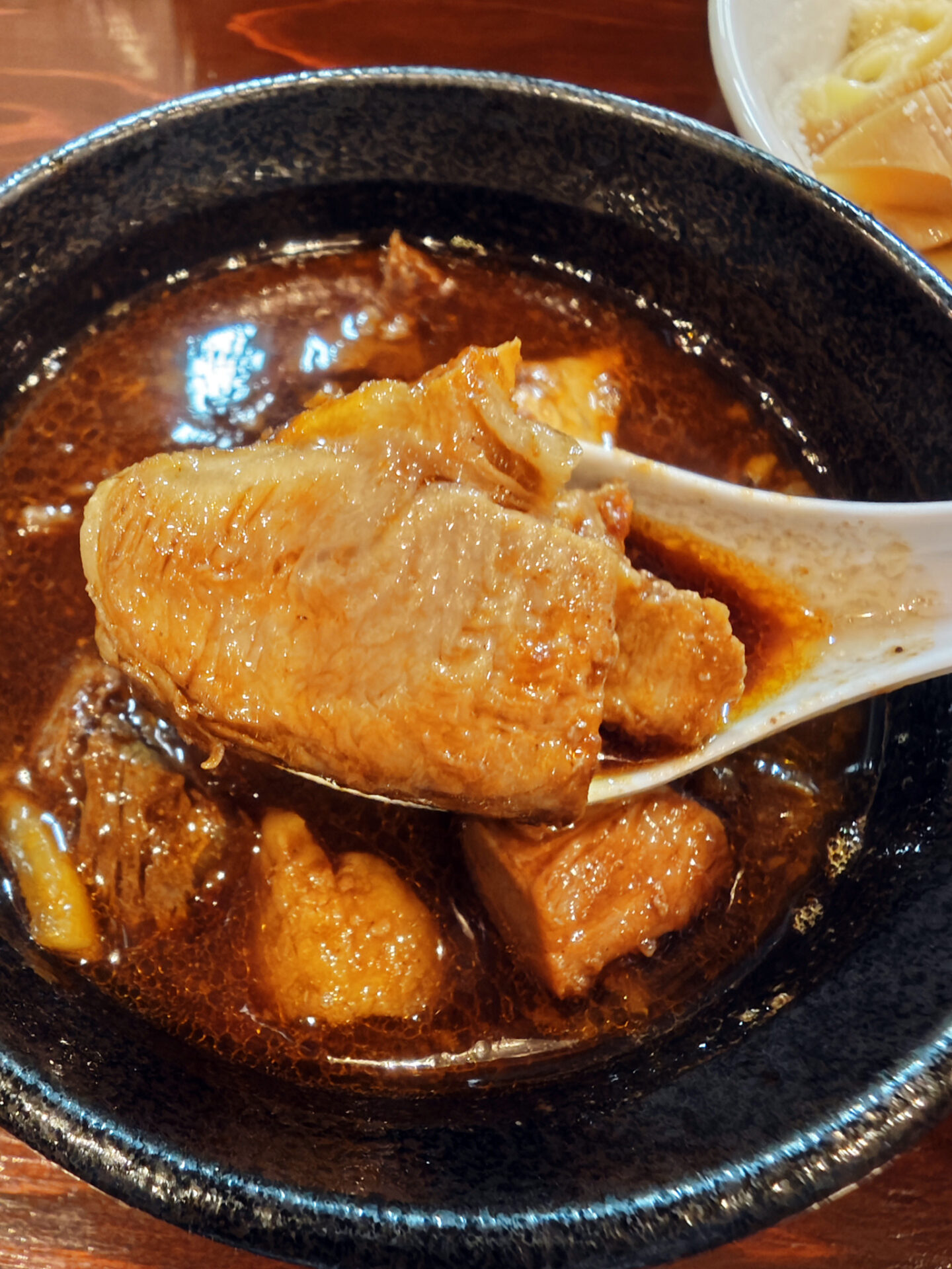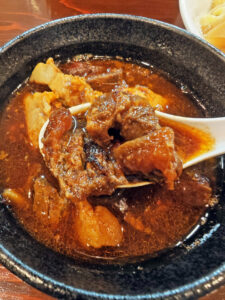 こちらは牛筋肉で、軟骨が柔らかくなるまで、とろとろに煮込まれています。