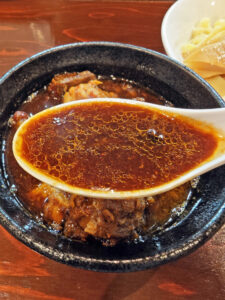 スープは、褐色で、デミグラスソースっぽい味わいです。