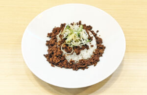 ご飯に挽肉がのって、ネギが添えられているというシンプルなものです。