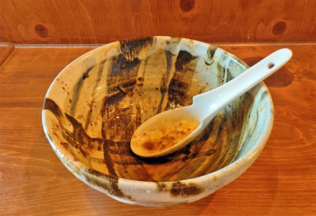 タレを、麺に絡めて啜ってみると、うま味たっぷりで、適度な辛味も効いていて、美味しいです。