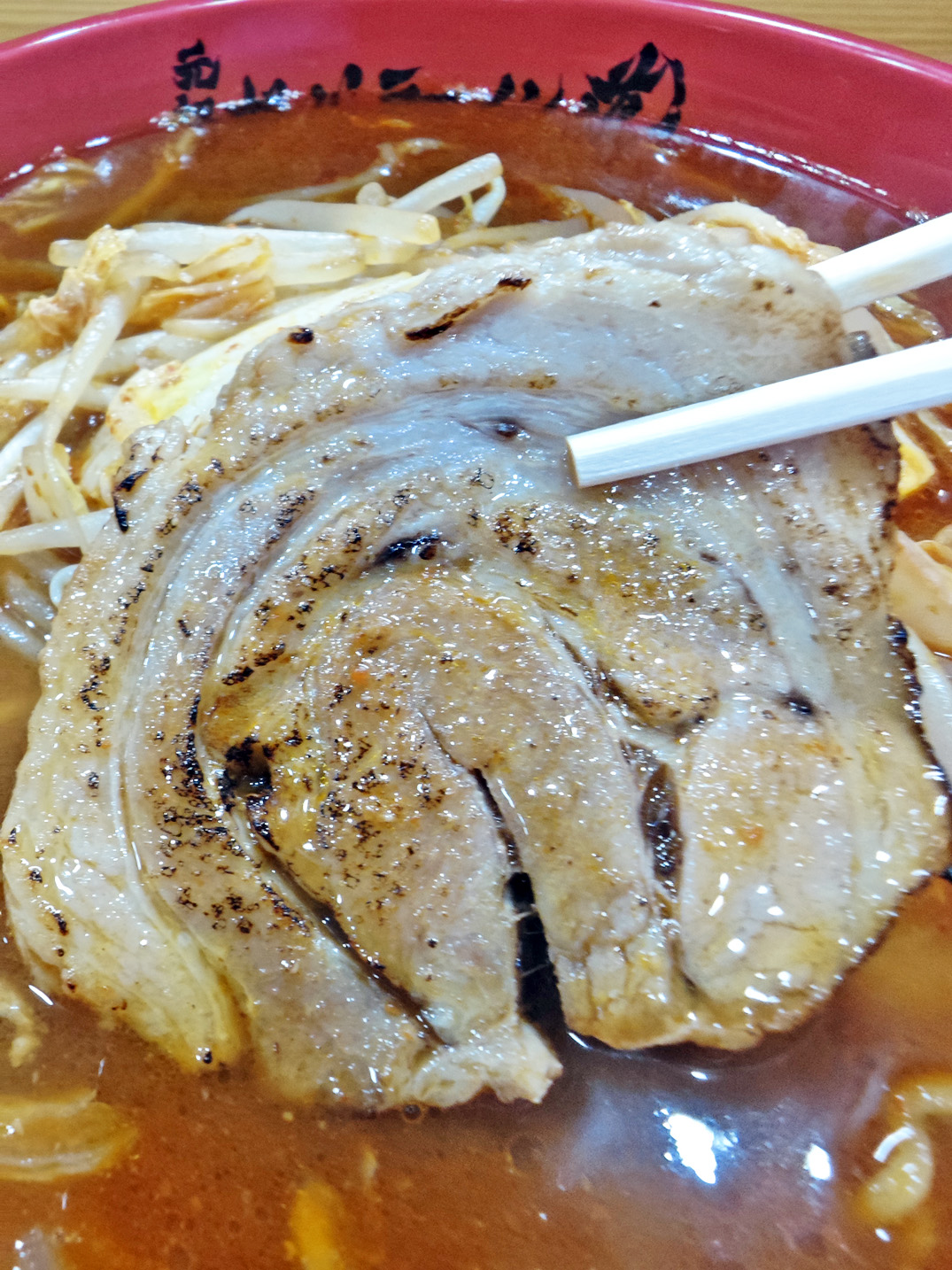 チャーシューは、バラロールで表面をバナーでこんがりと炙っています。