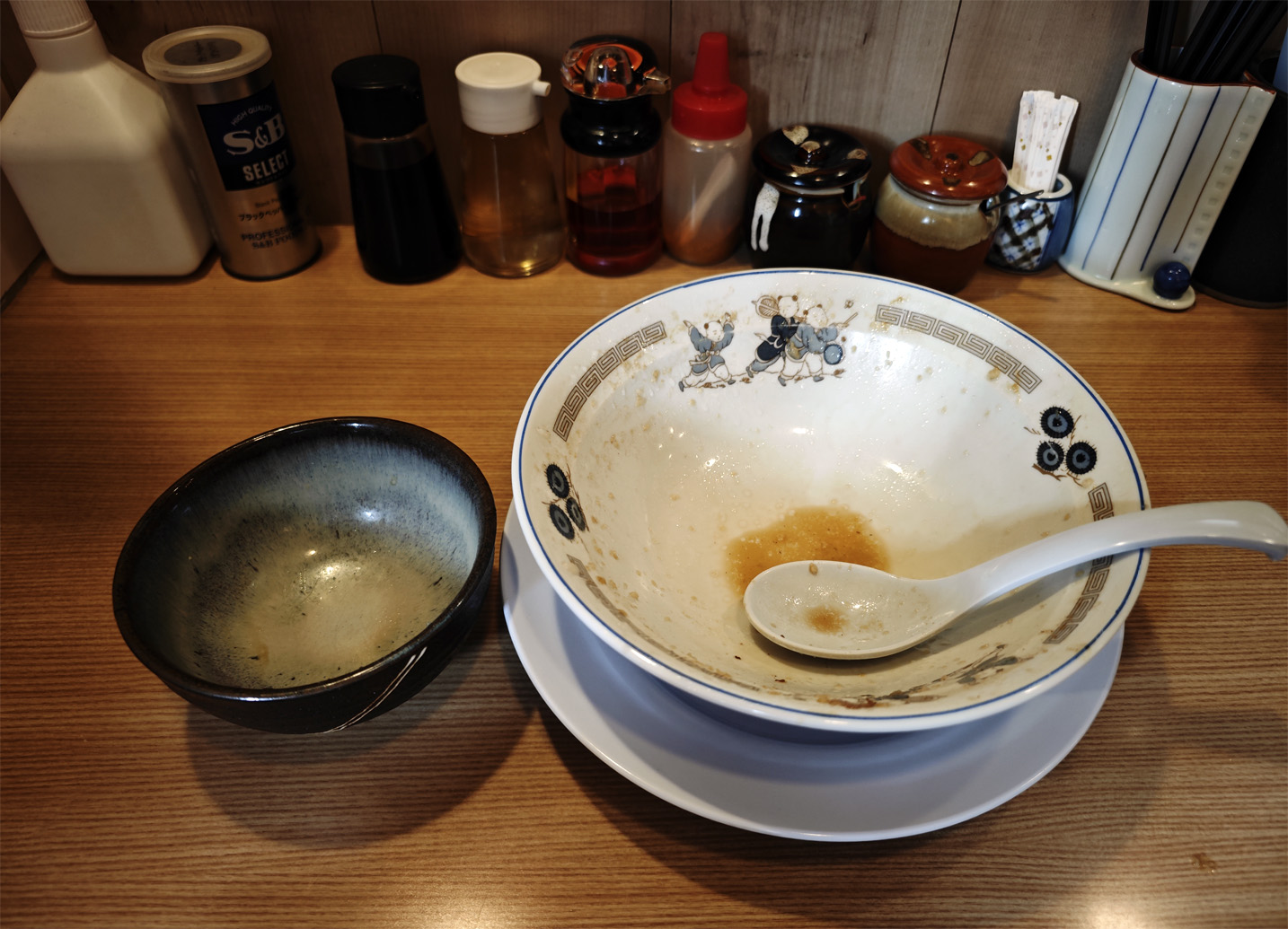 濃い目が好きな人は、卓上の”かえし醤油”を足すと、分かりやすい味になると思います。