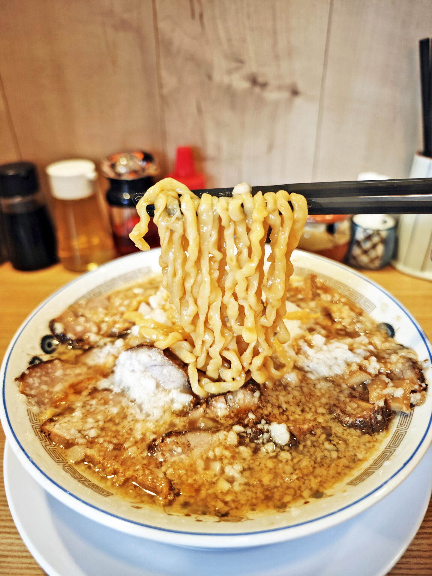 これだけの背脂の量ですが、脂っこさはなく、諄さもなく、背脂の甘い脂味を楽しめます。