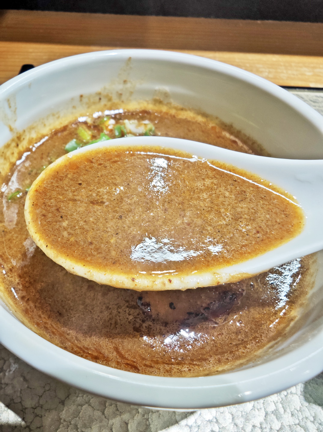 麺も格別ですが、スープも負けず劣らず、力強くインパクトのあるスープです。