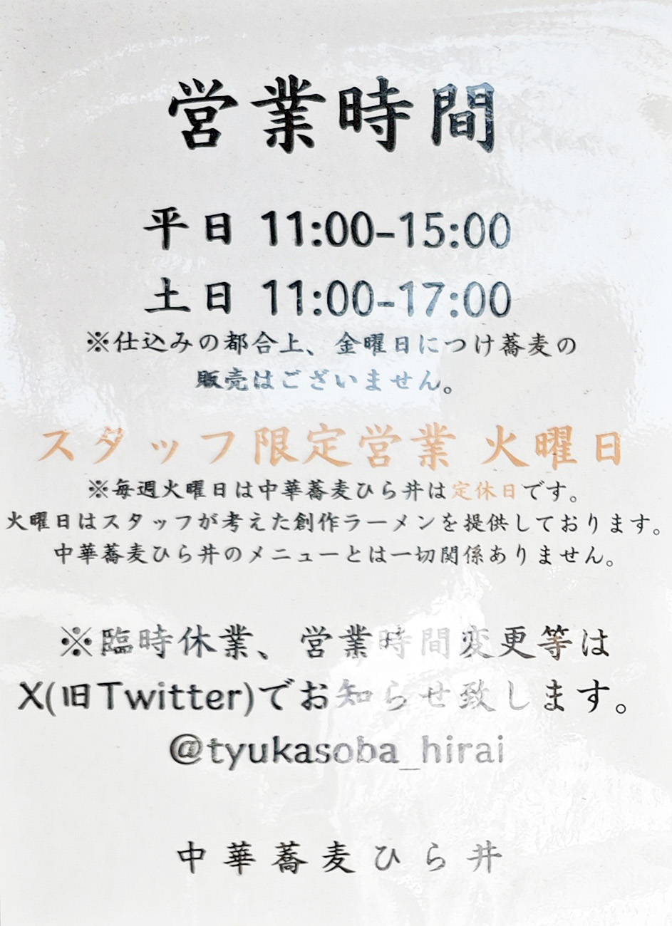店名:中華蕎麦 ひら井