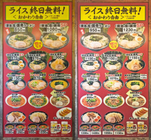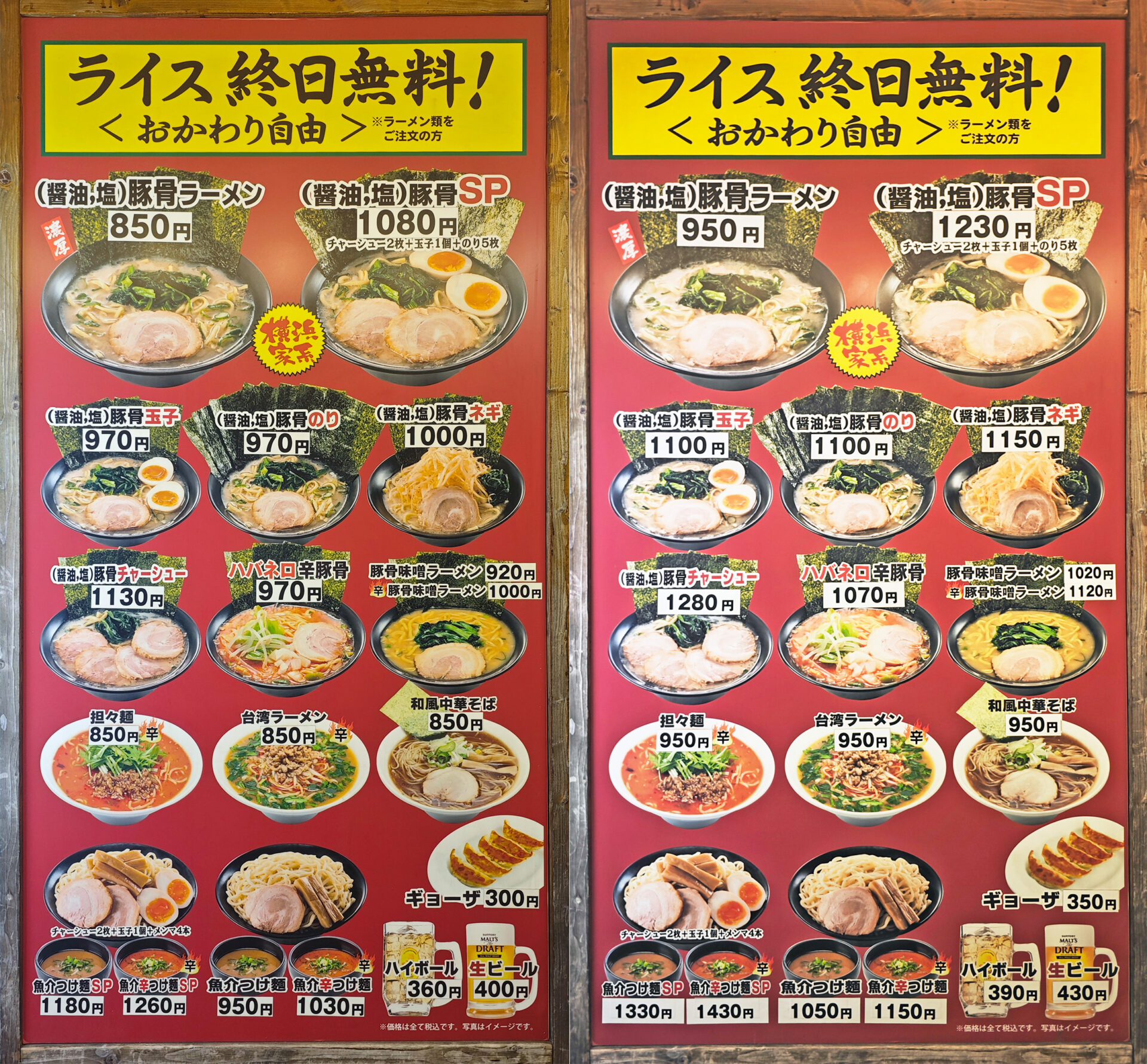 昨年と並べてみると、ラーメン一杯100円~上がっていますね。