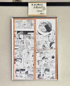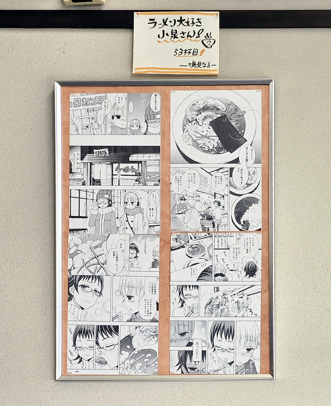 人気漫画「らーめん大好き小泉さん」にも登場したこちらのお店では、さりげなくコミックスや切り抜きが掲示されています。
