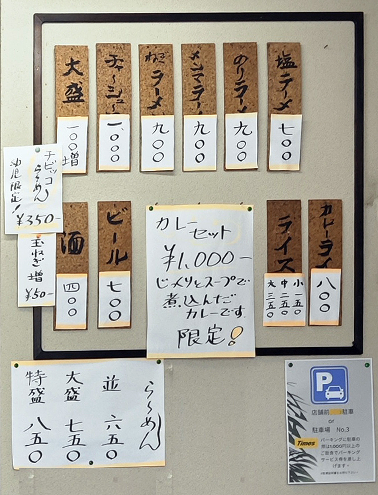 備考:カレーセットが人気。女将さんの接客は素晴らしい。「らーめん大好き小泉さん」で紹介された(53杯目)。