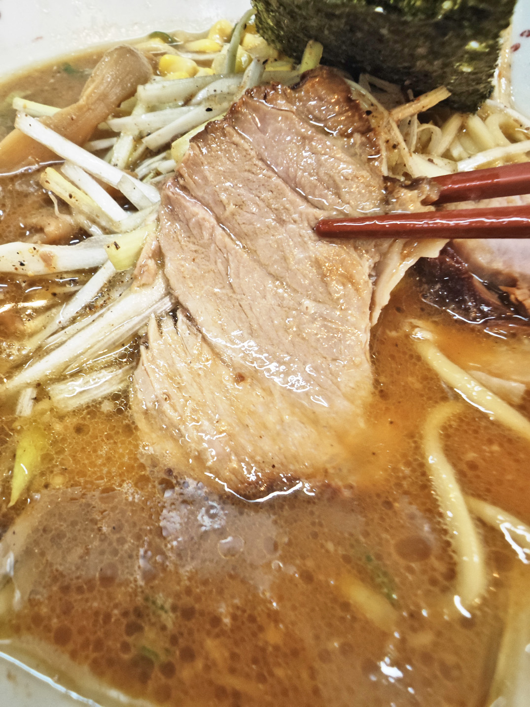 チャーシューは、パさッとした肉感ですが、柔らかく、美味しいです。
