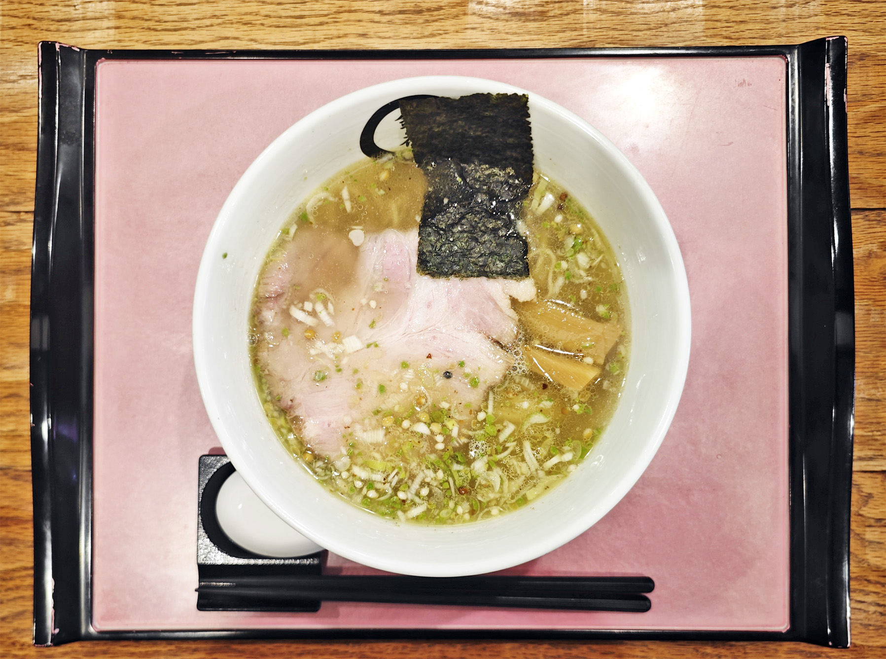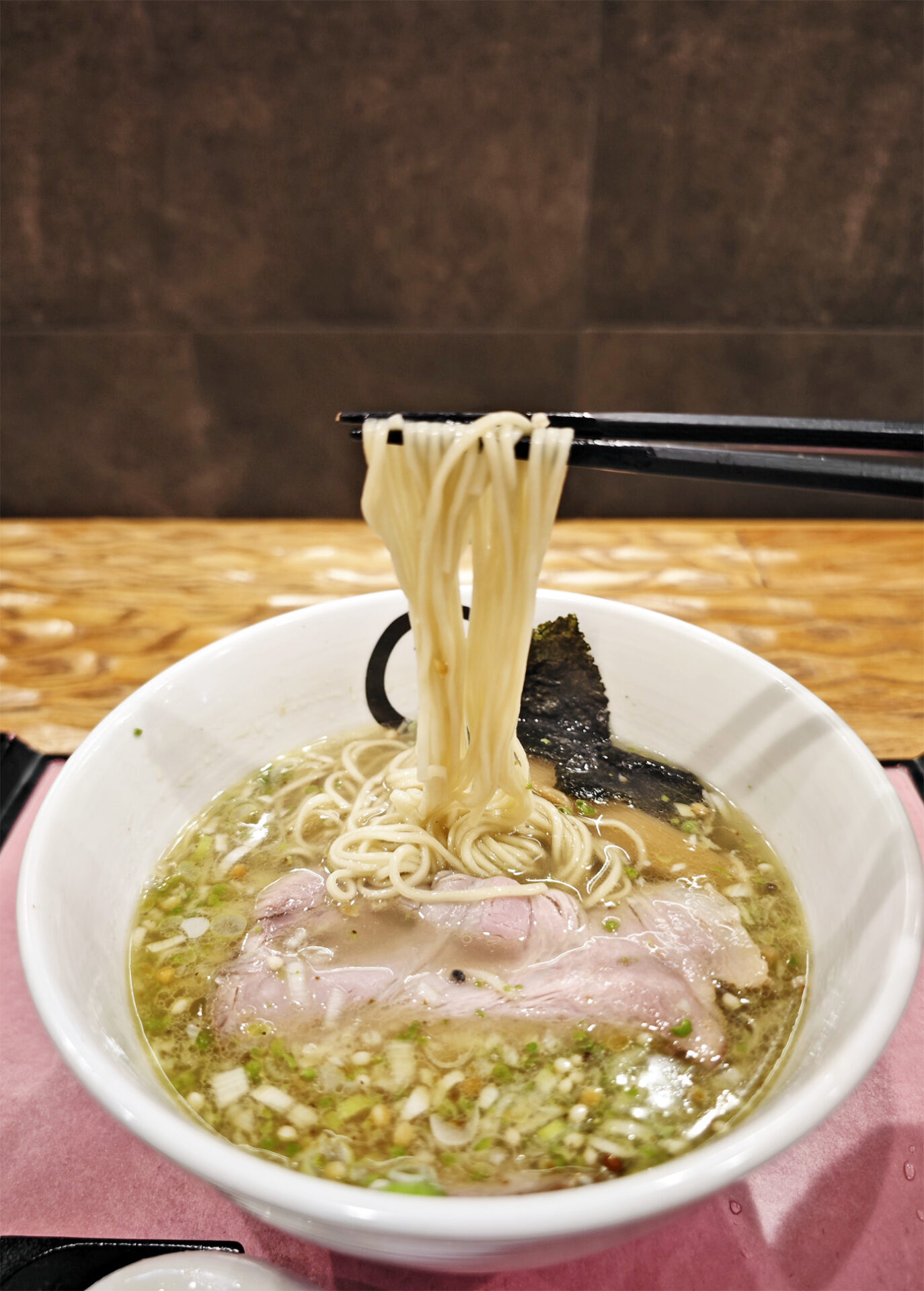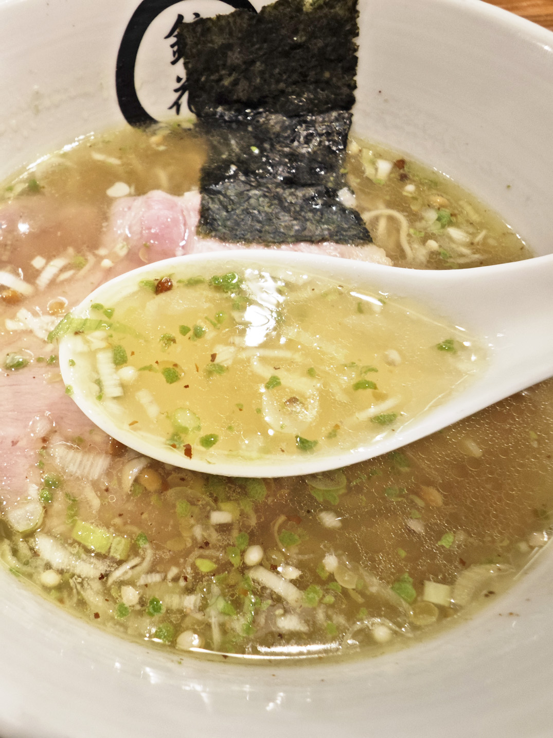 スープの表面には、細かく刻んだネギや、葡萄山椒が散りばめられています。