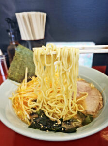 背脂も浮いていますが、全体的に大人しめのスープです。