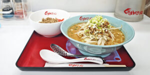 「味噌納豆ラーメン」1010円+「みそ味豚そぼろ丼」370円@くるまやラーメン 八王子店