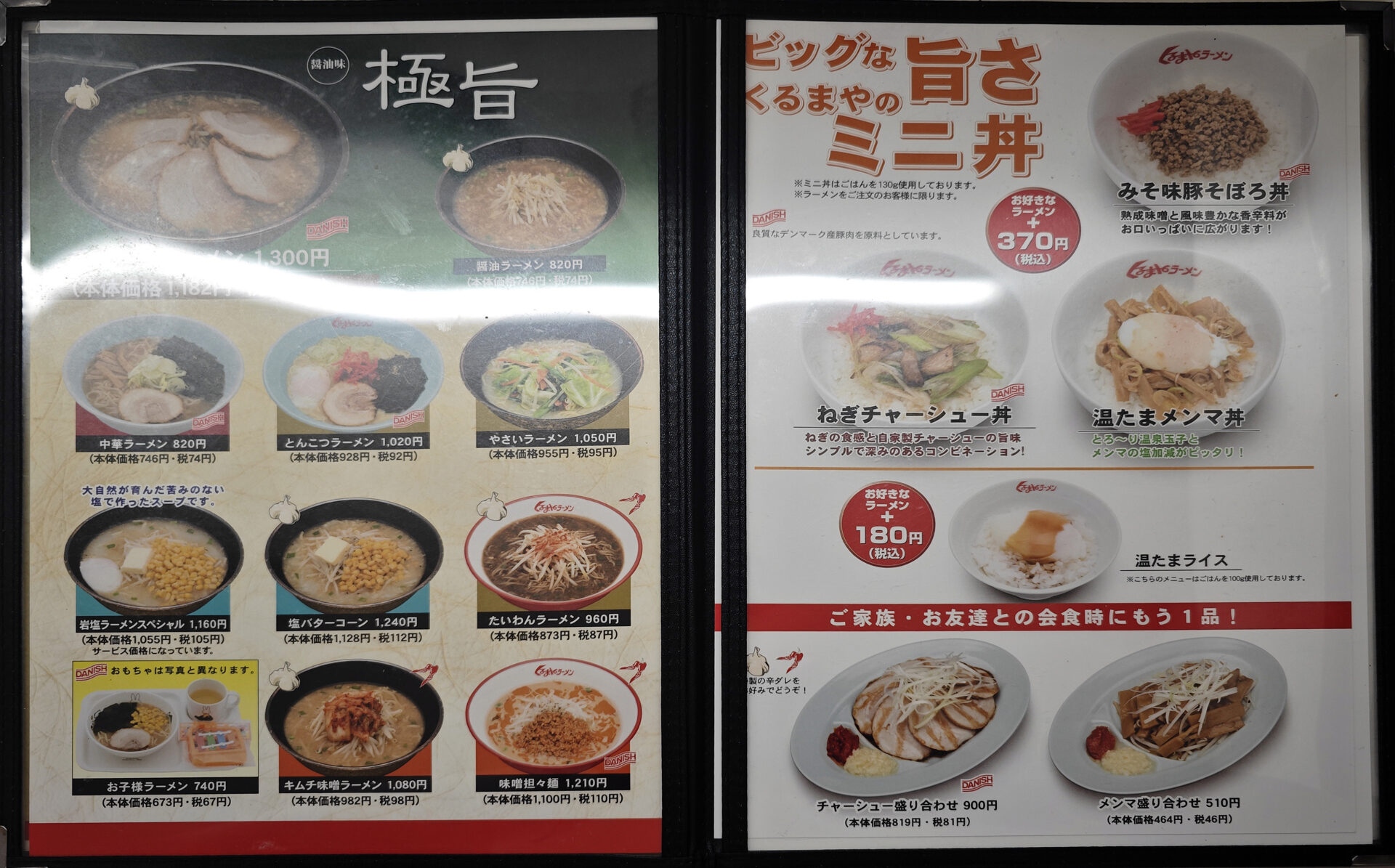 備考:豊富なメニュー。半ライス一杯無料サービス。午前11:00~午後3:00 焼き餃子(5個) 340円→240円。カード決済可。