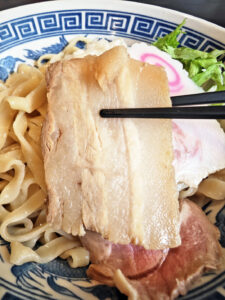 低温チャーシューは、脂は控えめなのに、奥深いコクを楽しめる上品な味わい。