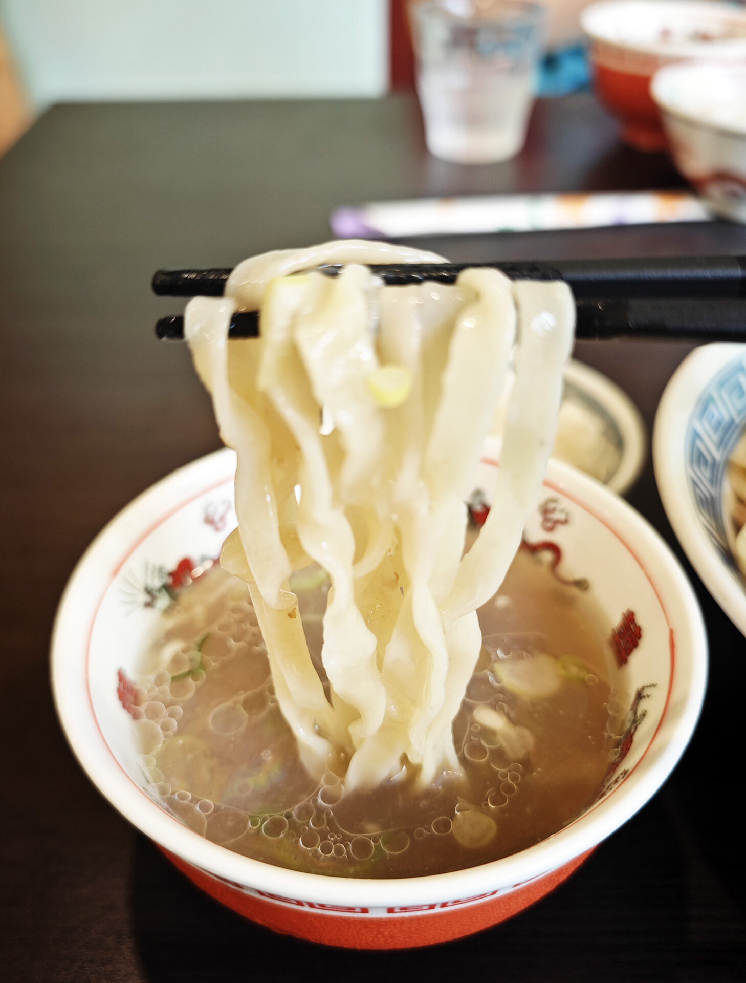スープをしっかり抱き込み、豊かな旨味を運んでくれます。