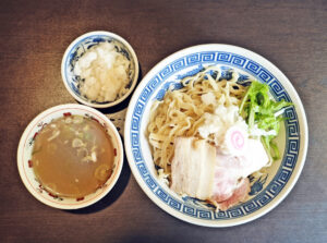先日は、「タンドリーチキンの冷しめん」を頂いたので、今回は「貝出汁冷しつけ麺」を頂きます。