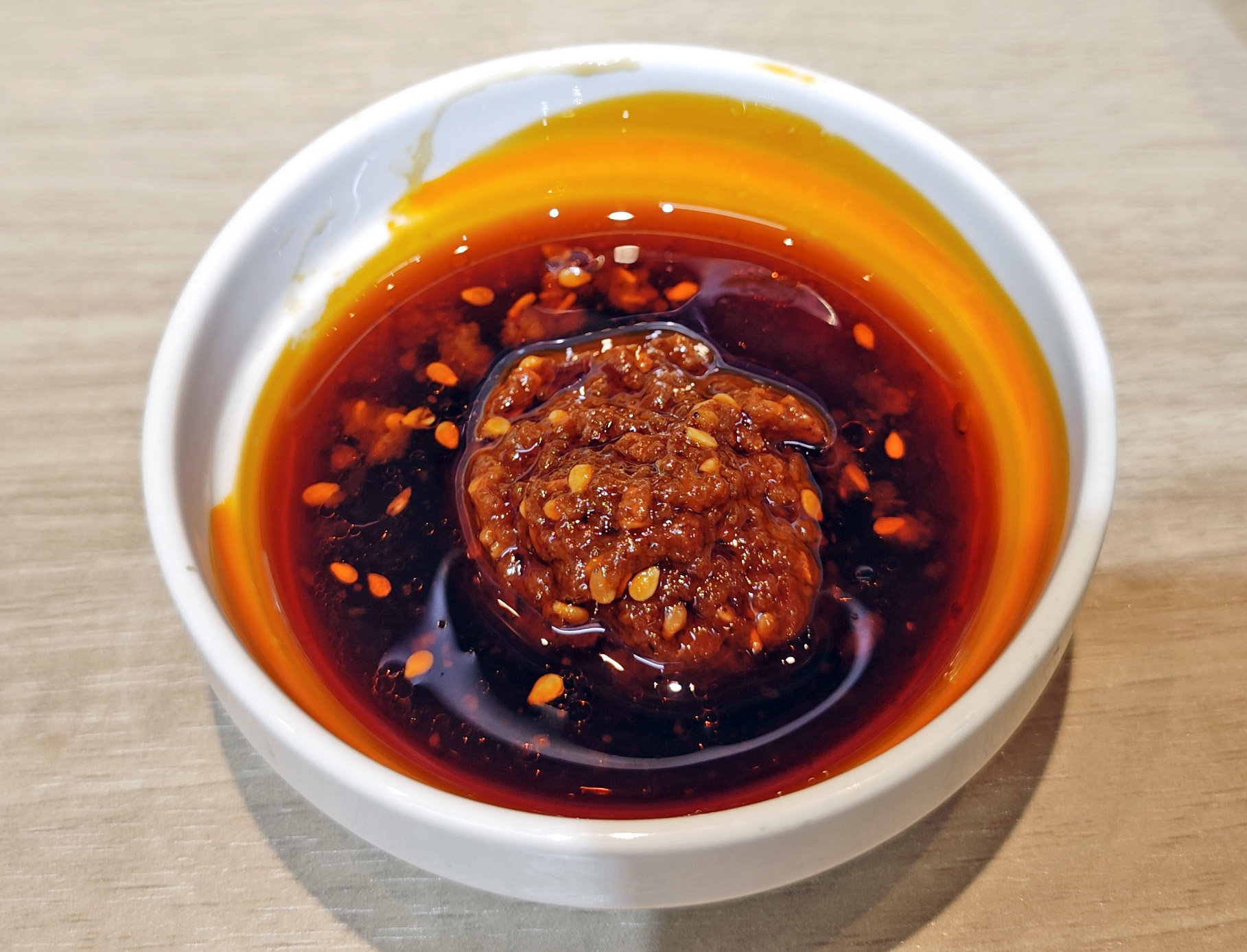 途中から「レッド玉」を投入すると、濃厚豚骨に絡む刺激と辛味が、旨さを覚醒させます。