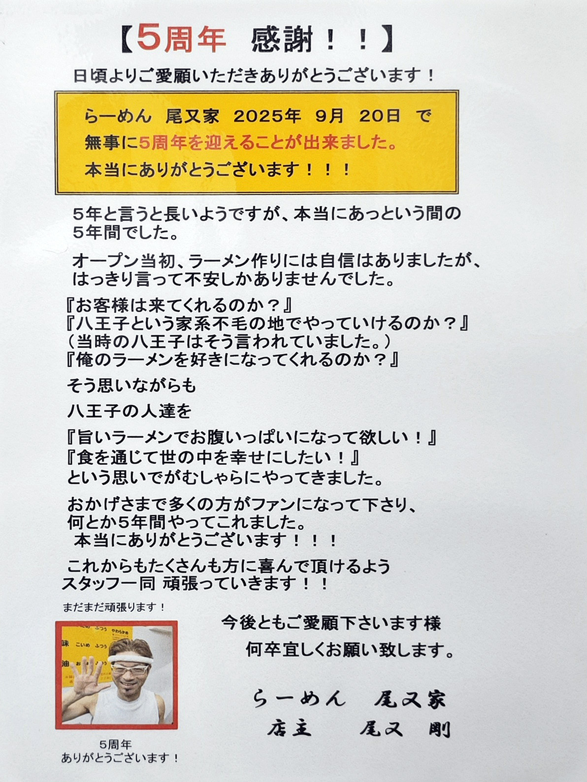 といわけで、お店に入るや否や「5周年おめでとう!」と言うと、店主が「オープン当初から、いじってくれて、ありがとう!」と、返してくれました。