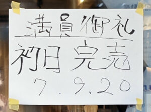 1時半ごろに、すでに完売していました。