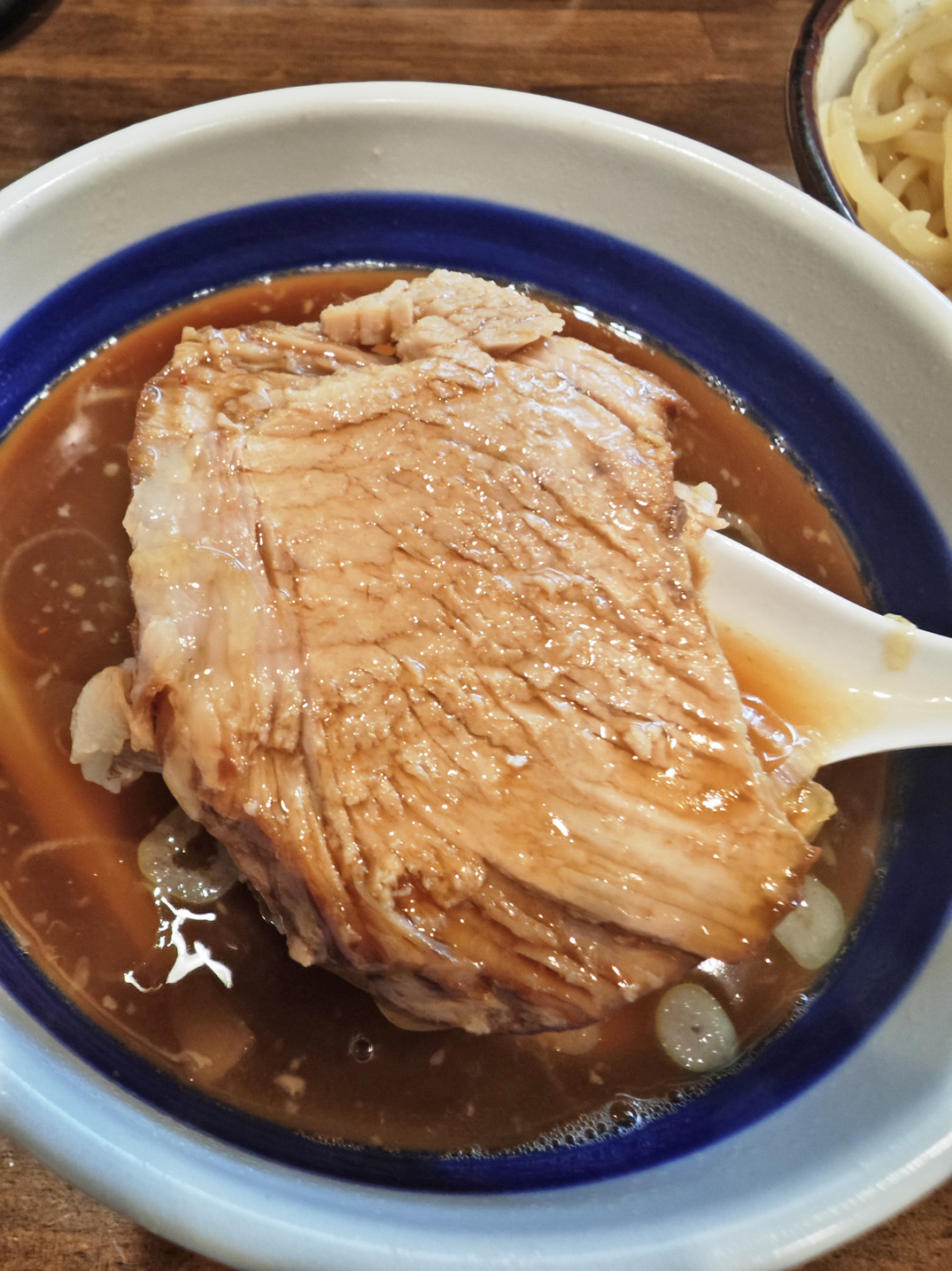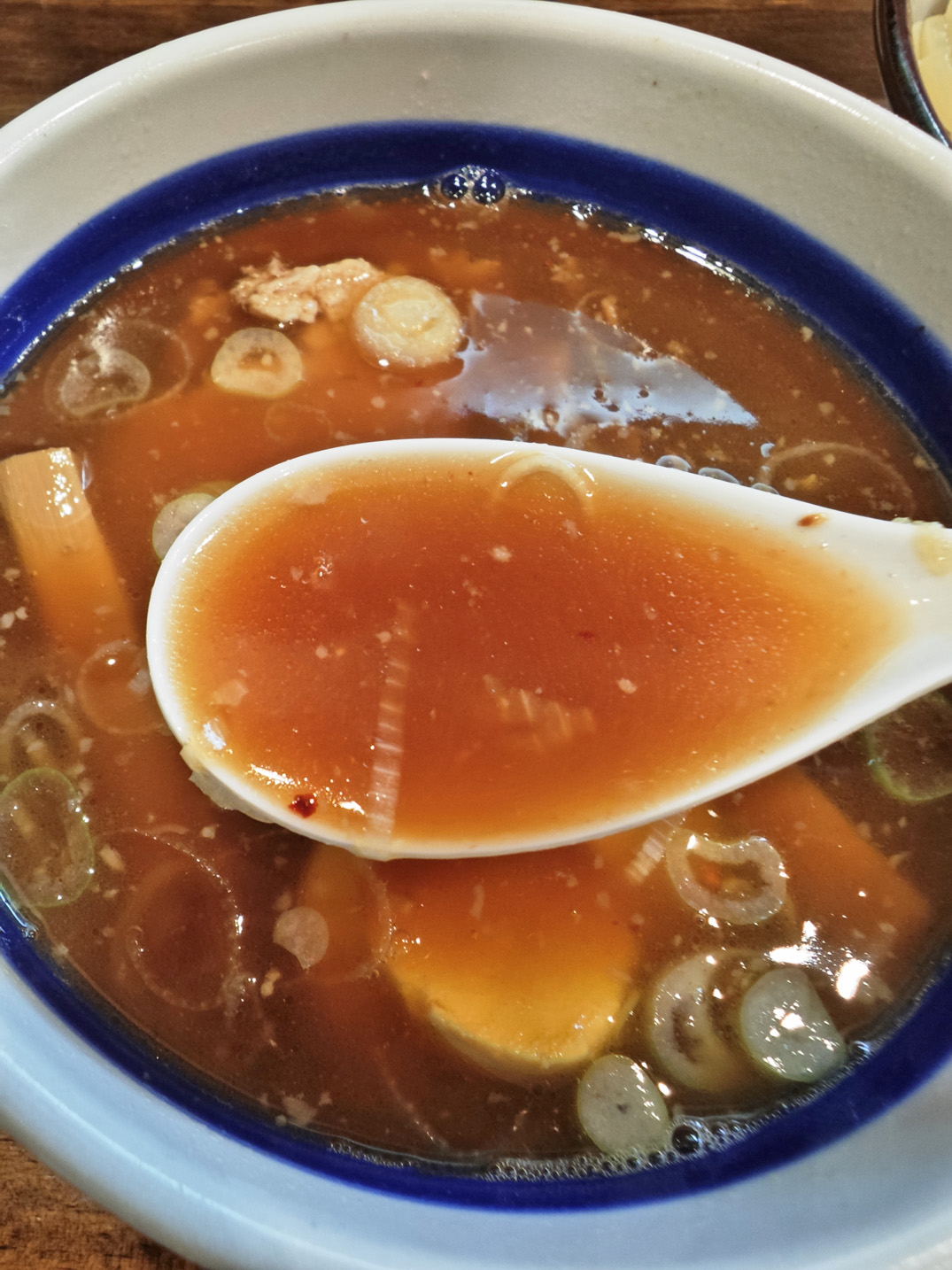 少し硬めで、パサつくチャーシューは大勝軒の特色です。