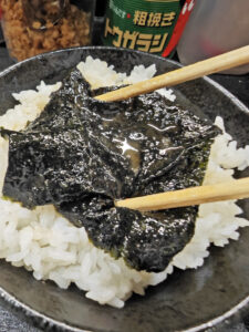 前回はライスが食べれませんでしたが、今回はライスもありますので、スープと海苔を合わせて頂きます。