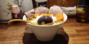「ビーフラーメン」900円+「牛すじまし」400円+「チャーブーまし」300円+「シゲッキーまし」100円+「赤ワインたまご」100円+「チーズのっけ」100円@ビーフラーメン&つけ麺 シゲジン