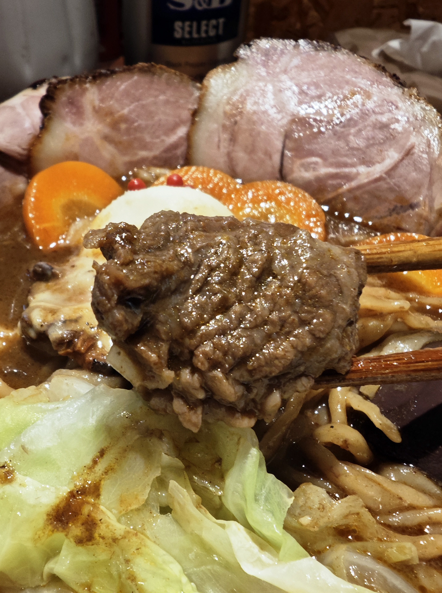 まるでビーフシチューのような艶があり、牛の旨味と野菜の甘みなど、重層的なコクがあります。