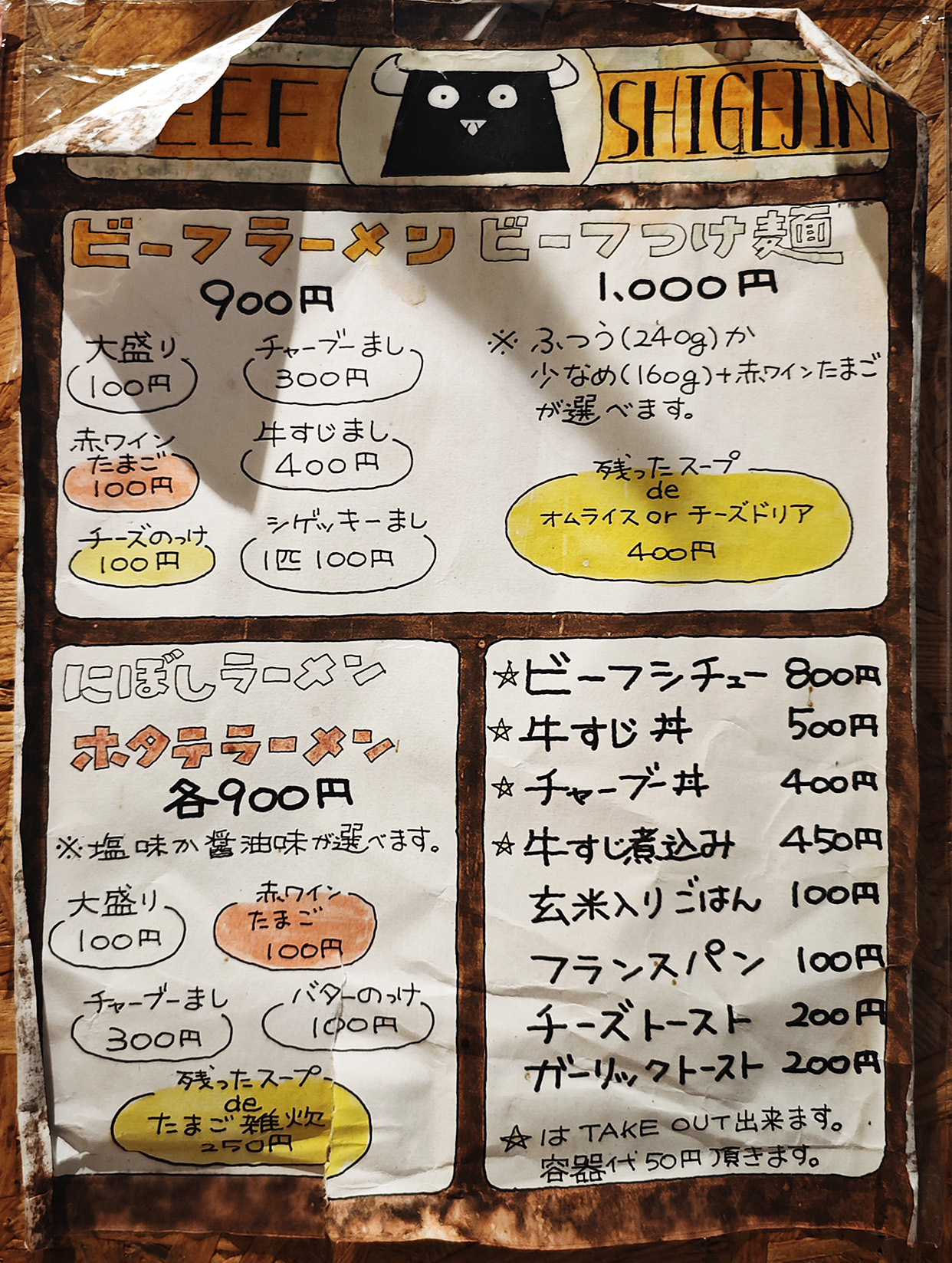 「ビーフラーメン&つけ麺 シゲジン」に行ってきました。