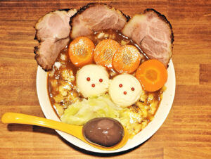 スープは、野菜と牛肉を煮込み、自家製デミグラスソースにラーメンスープを合わせた洋風テイストです。