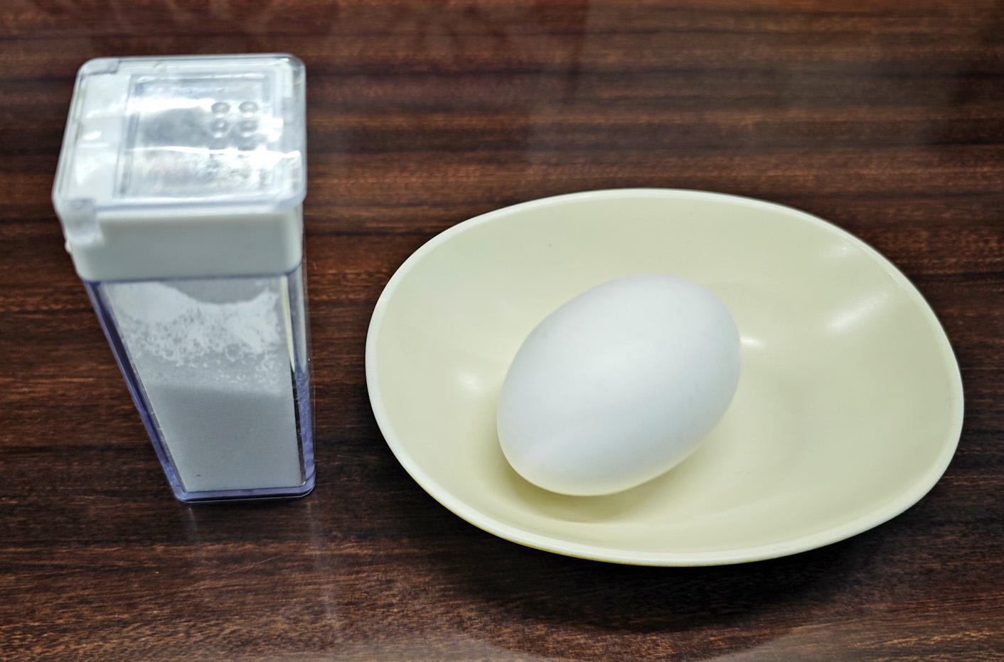 ラーメンを作っている間、提供された殻付きの「ゆで玉子」を食べます。
