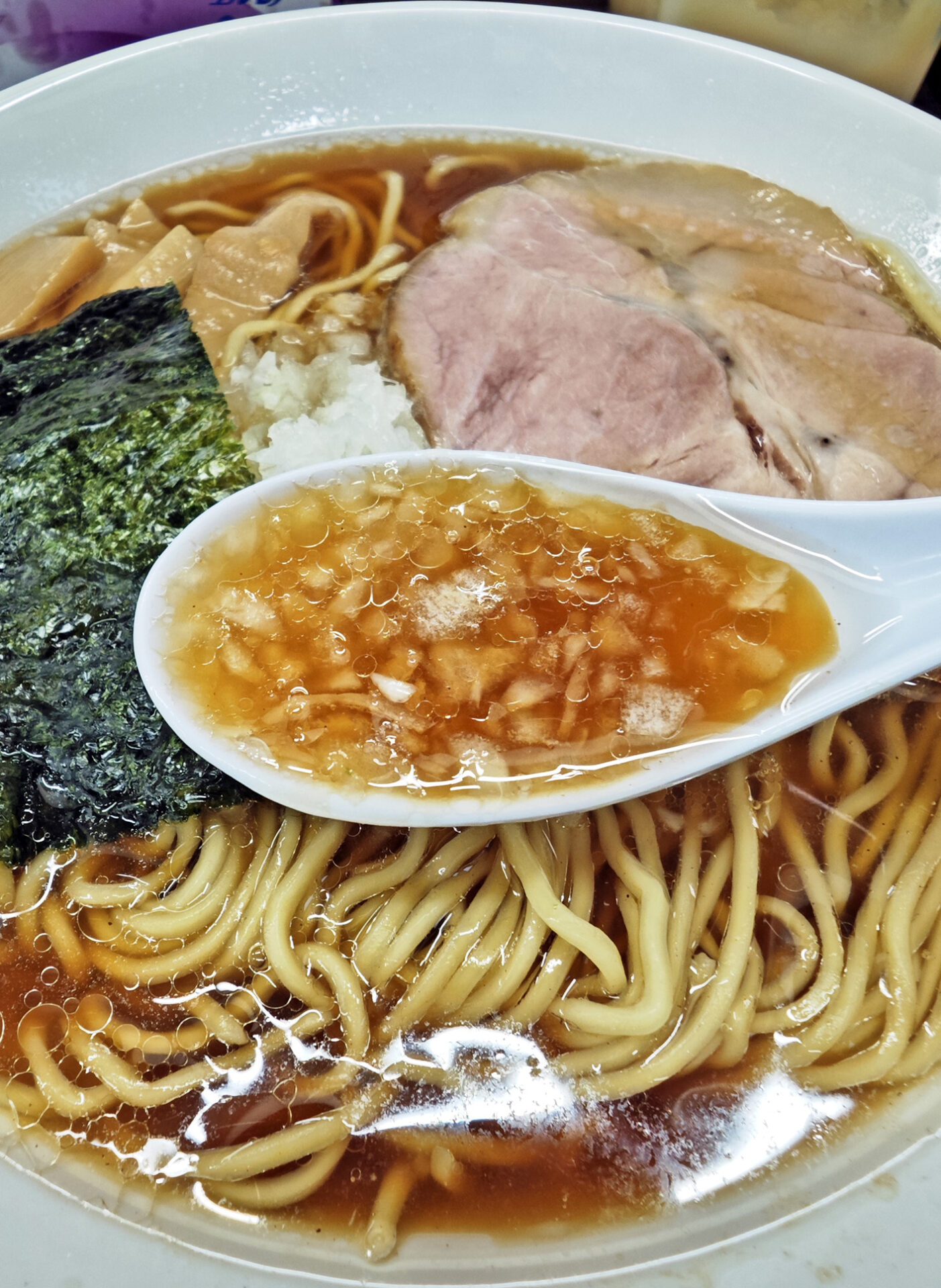 刻み玉ネギの乗った醤油ラーメンで、程よい旨味があり、しっかりと醤油の旨味、香りが立っています。