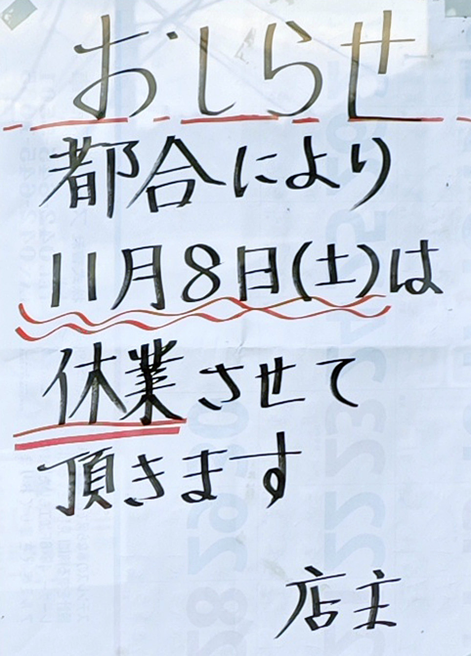 最近とくに閉店してしまうお店が増えてきたので、店頭に貼り紙があるとドキッとしてしまいます。