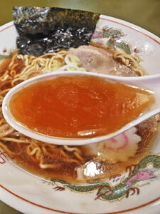 スープを啜ってみると、とてもあっさりした醤油味です。